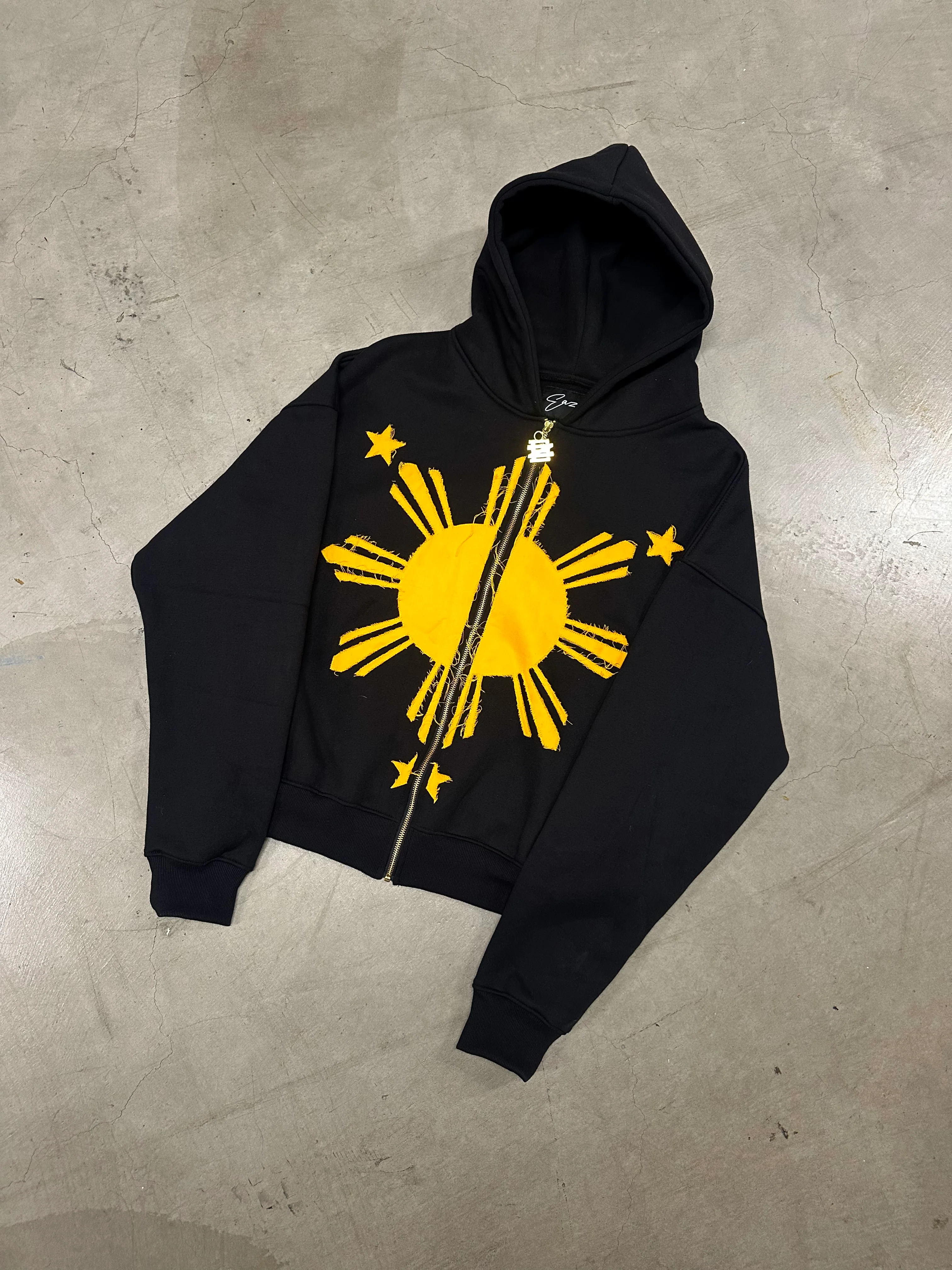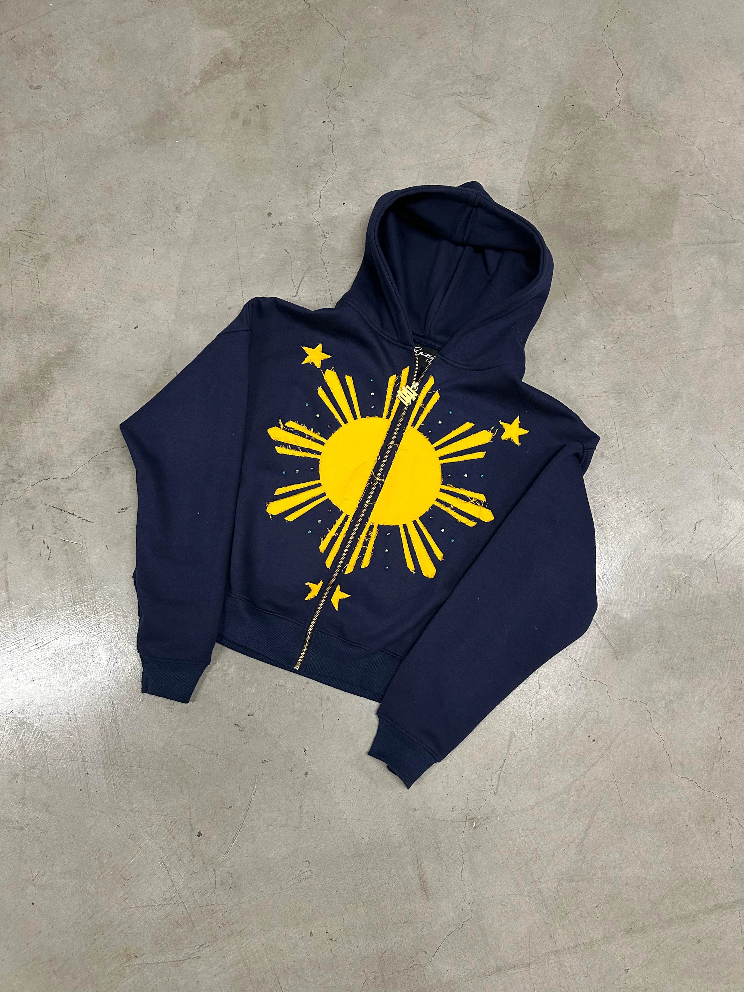 SUN GEMSTONE DISTRESSED EMBROIDERY HOODIE