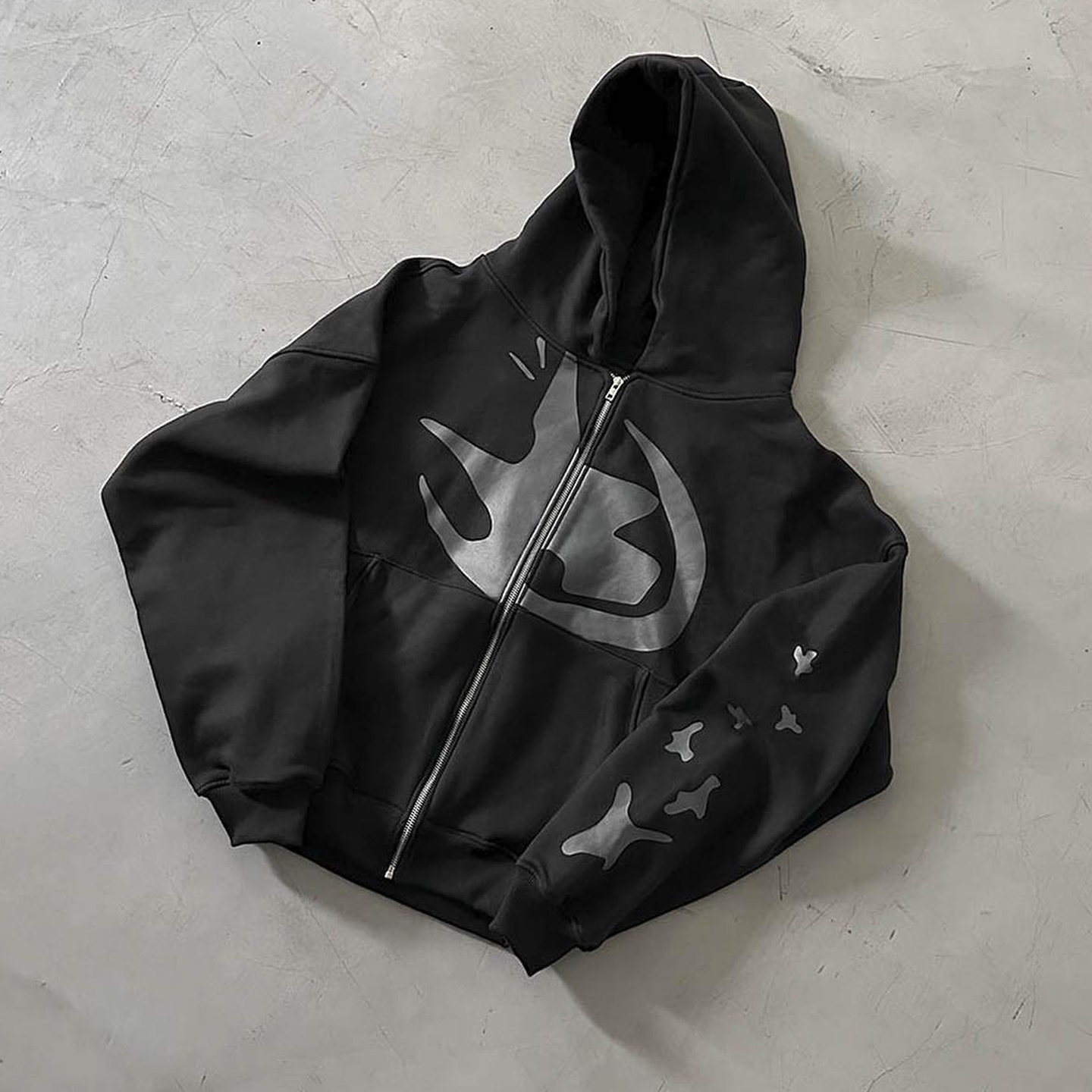 Dio Fear Print Long Sleeve Zipper Applique Embroidered Hoodies