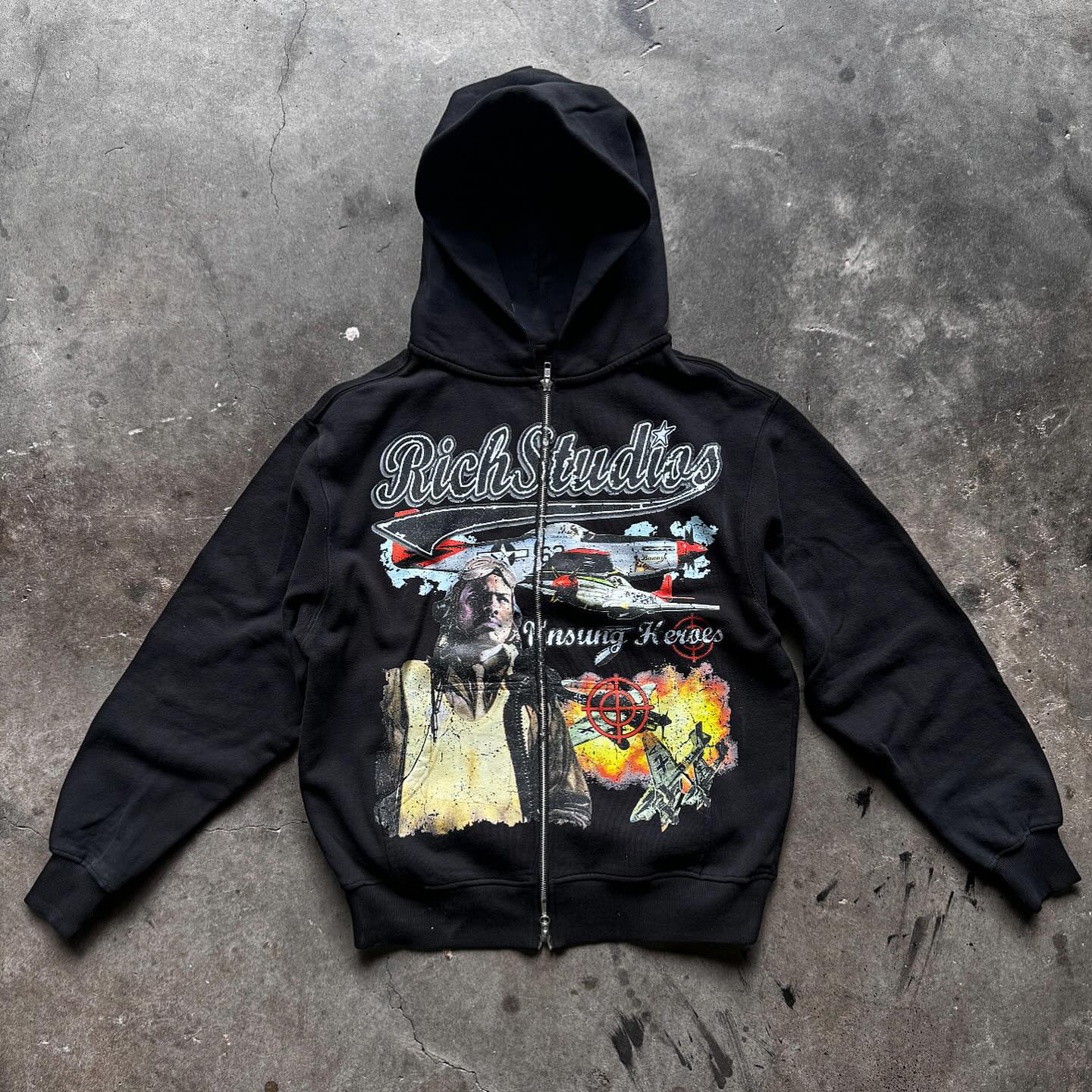 Portrayal Vesture Print Long Sleeve Zipper Hoodies