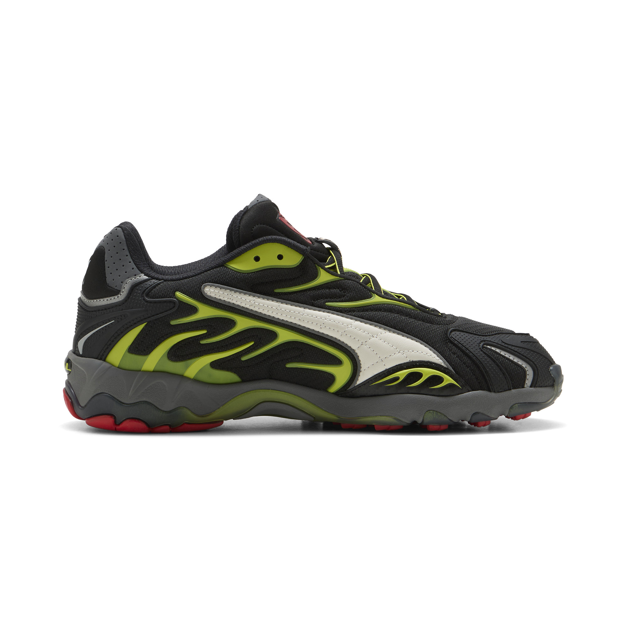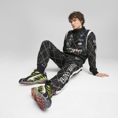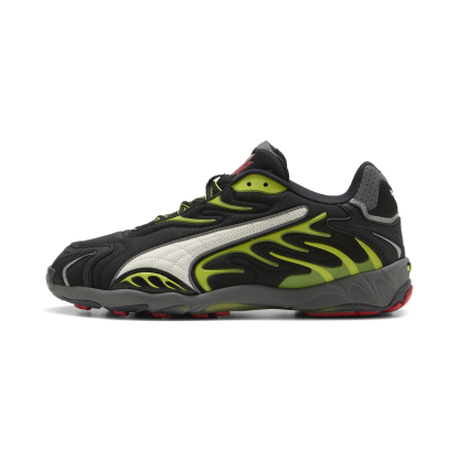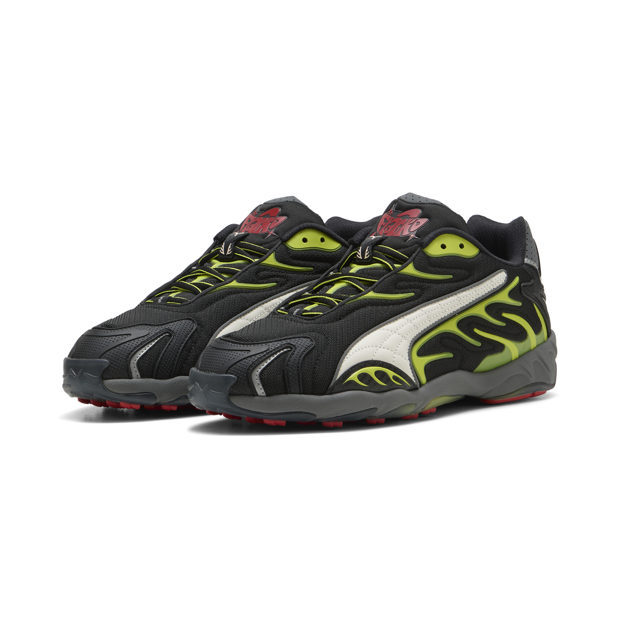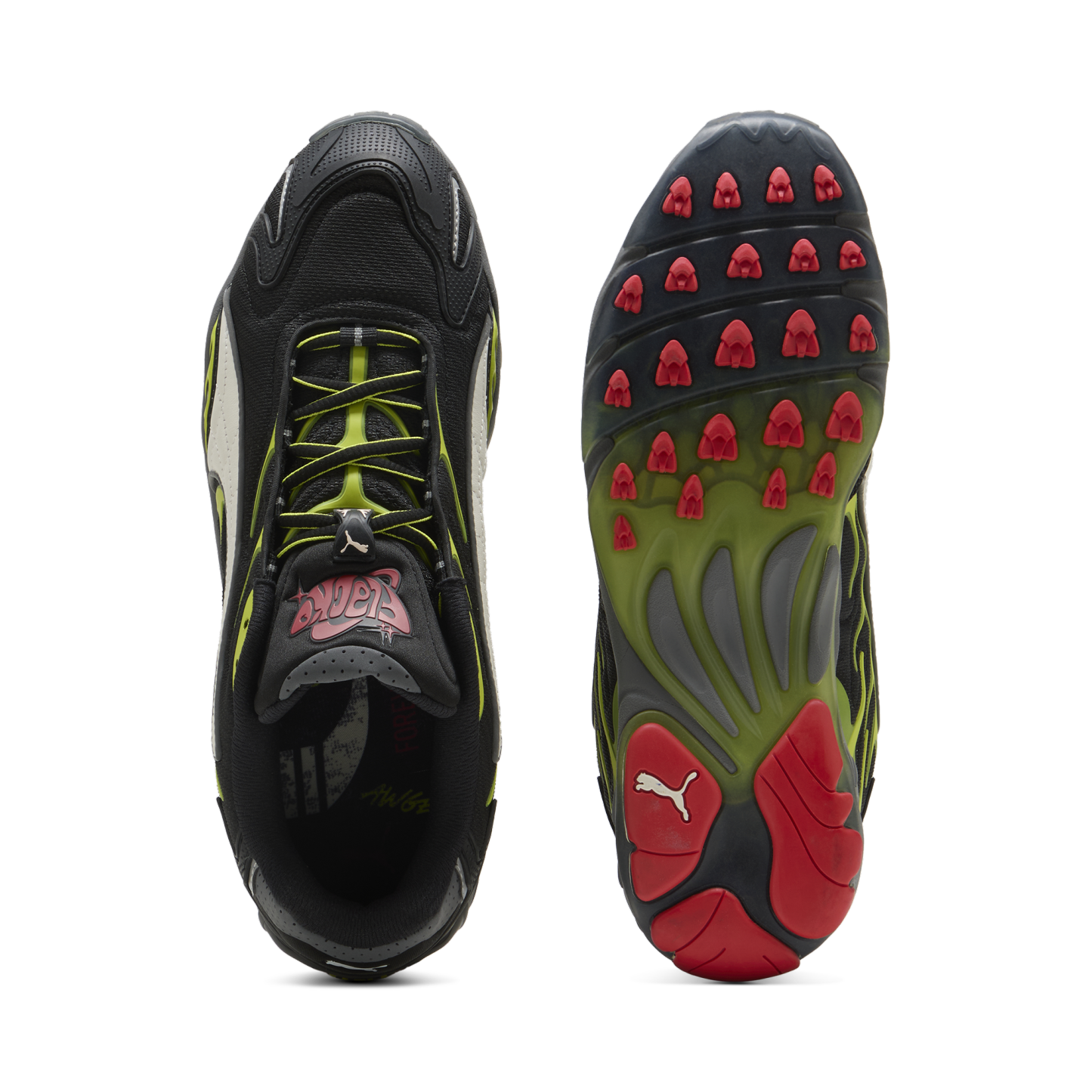 A$AP Rocky puts his own spin on the Puthtma Inhale. The progressive streetwear staple is re-engineered with a mesh upper, heat cut flames surrounding the Formstrip, and a translucent gradient sole. Reflective detailing, a FLACKO logo on the tongue, and a printed custom footbed round off this track-to-street icon.