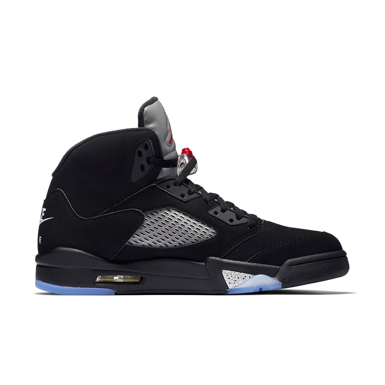 The Air Jordan 5 OG ‘Metallic’ is a 2016 release that offers a remastered version of the classic OG colorway from 1990. A faithful reproduction of the original design, the sneaker features a Black nubuck upper with a reflective 3M tongue, Fire Red accents, an icy Blue outsole, and the iconic ‘Nike Air’ logo on the heel. The Air Jordan 5 OG ‘Metallic’ sneaker was retro released in 2000, 2007, 2011, and now 2016, making it a must-have for any Air Jordan fan or collector.