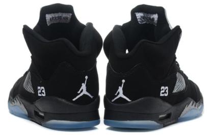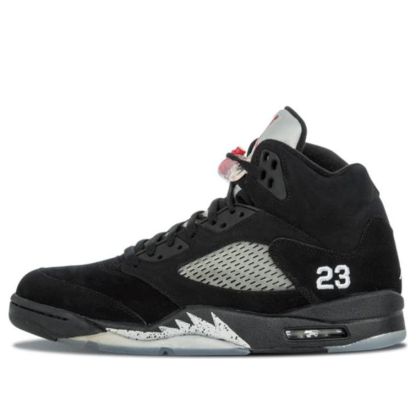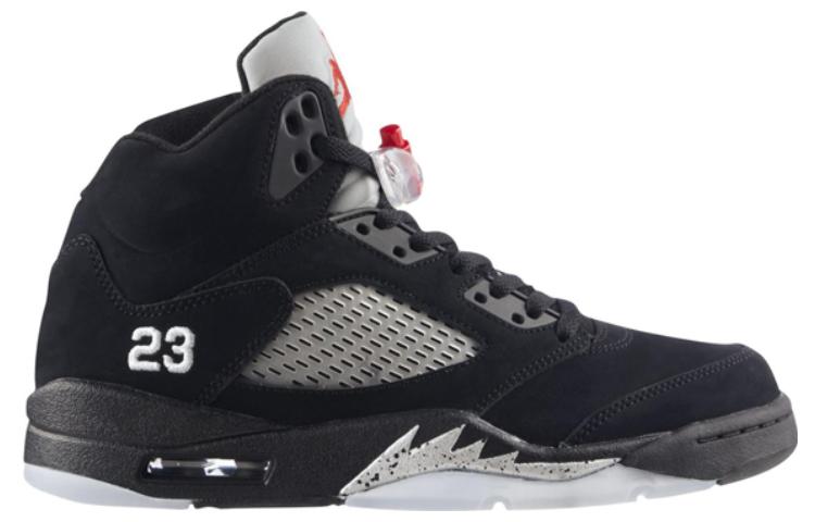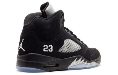 The Air Jordan 5 Retro 'Metallic' 2011 offers a classic look with a modern twist. First released in 1990, this updated version features a black suede upper with a reflective 3M tongue. The signature 'Jumpman' logos are present at the heel and tongue, with an embroidered '23' at the ankle. This timeless sneaker is perfect for any Jordan fan or collector.