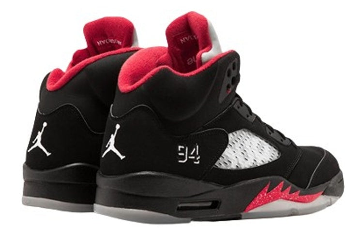The Nike Supreme x Air Jordan 5 Retro 'Black' is a special edition sneaker that was released in October of 2015. This sneaker is part of a limited edition collaboration between Nike and Supreme, and features Supreme branding across the netting and the number ‘94’ on the heel representing the year Supreme was founded. The sneaker is made with high-quality materials and construction, and is designed for durability and style.