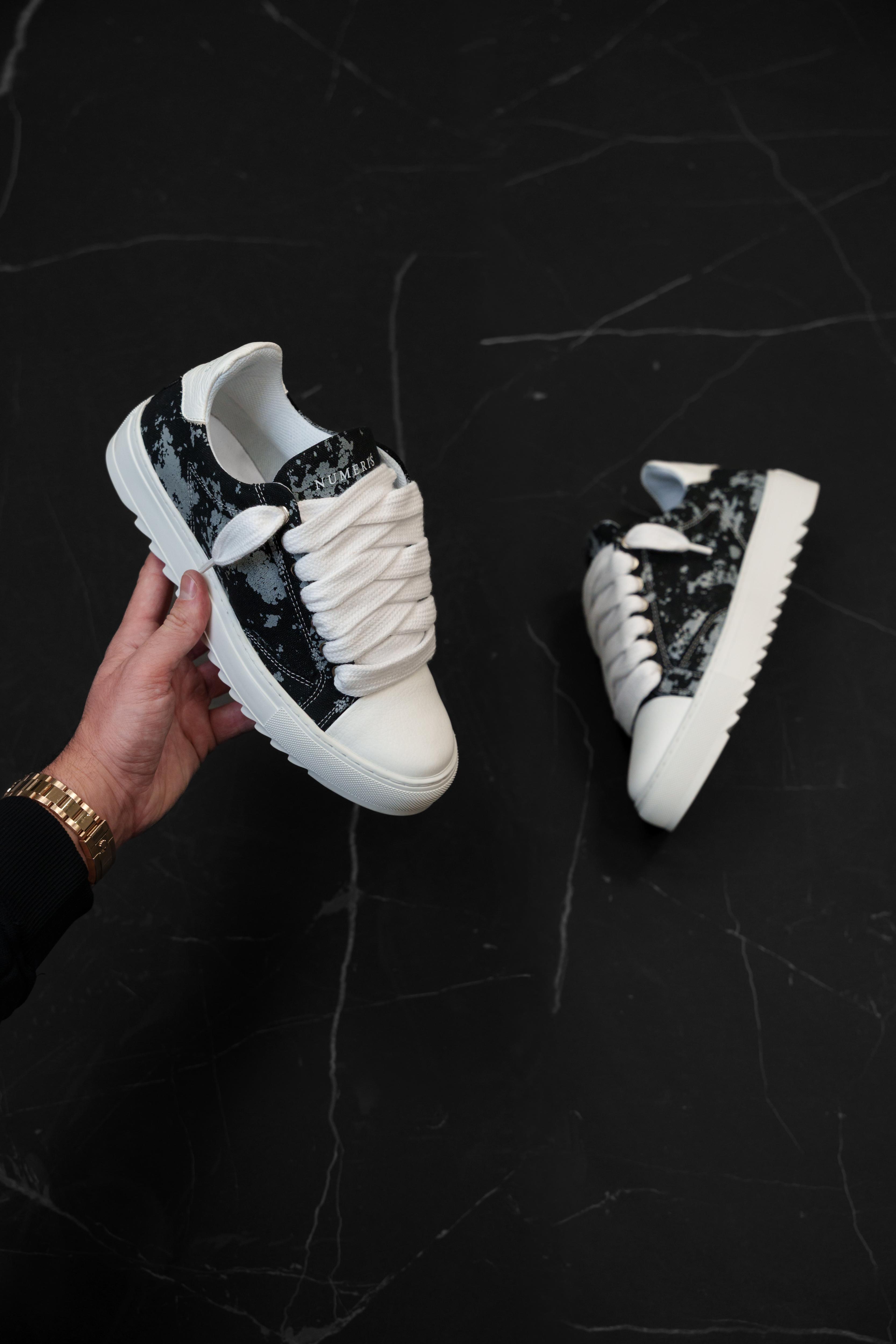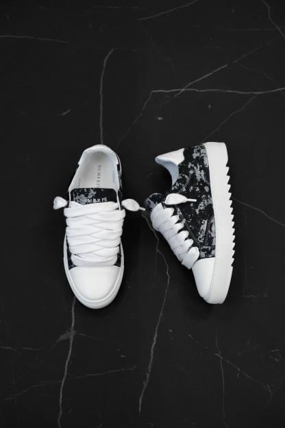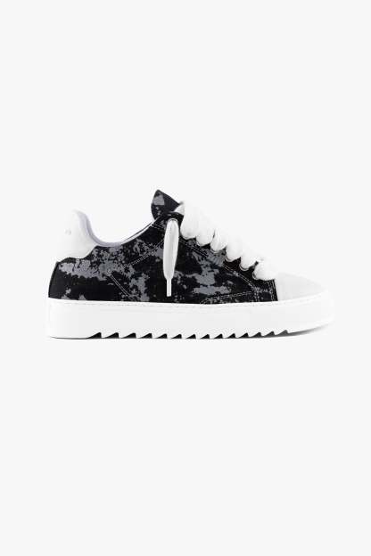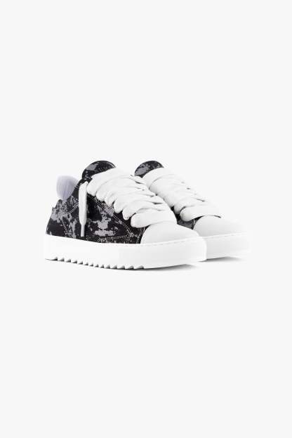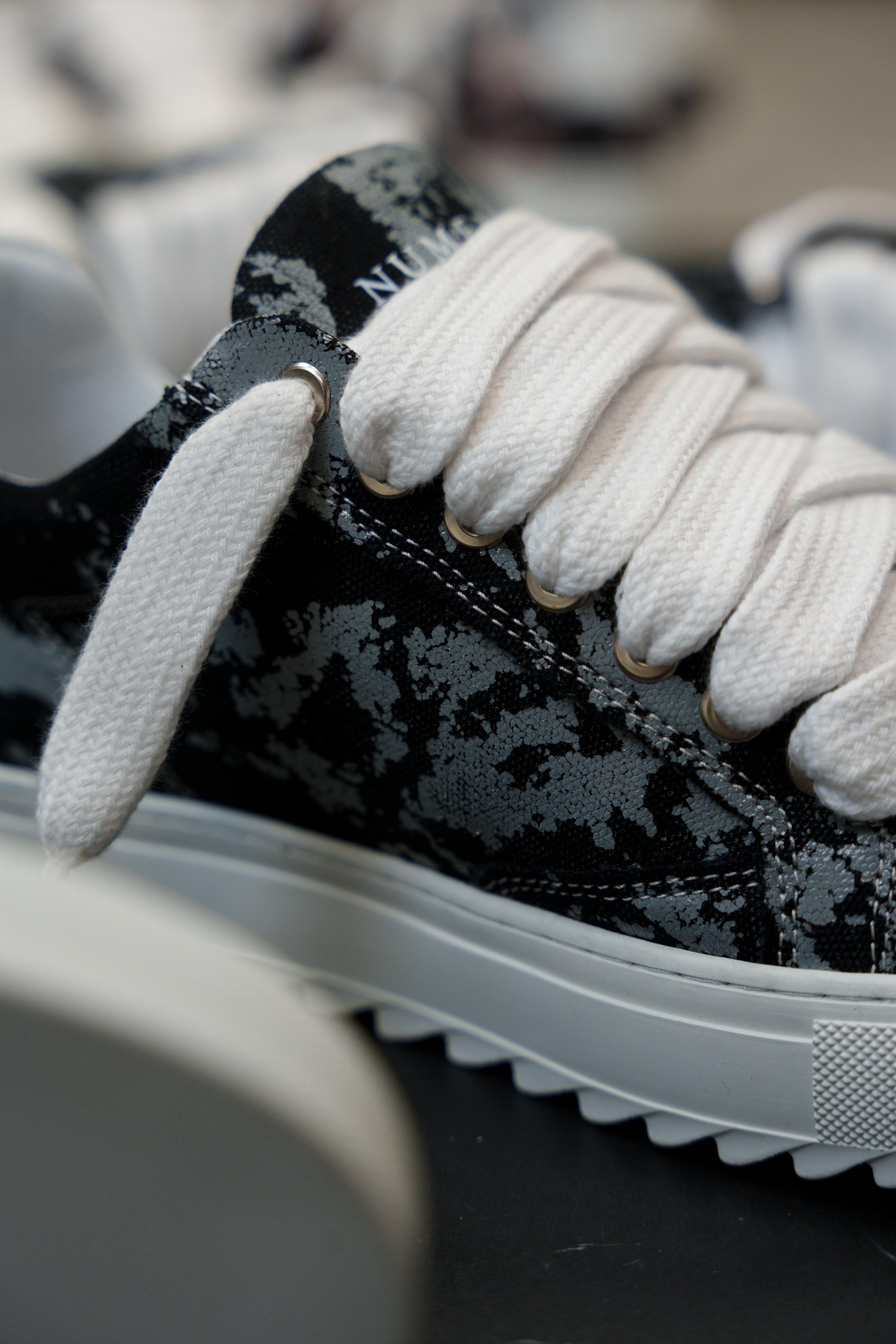 Crafted with meticulous attention to detail, the bespoke hand-dyed canvas upper ensures that each pair is a unique work of art, as no two pairs will bear the same pattern. Complementing this distinctive feature is the signature crisp white pebbled leather toe cap, adding a touch of sophistication to the design. Inside, the trainer boasts a comfortable collar lining that enhances the overall wear experience. The finishing touches include our distinctive Numeriś branding on the heel.