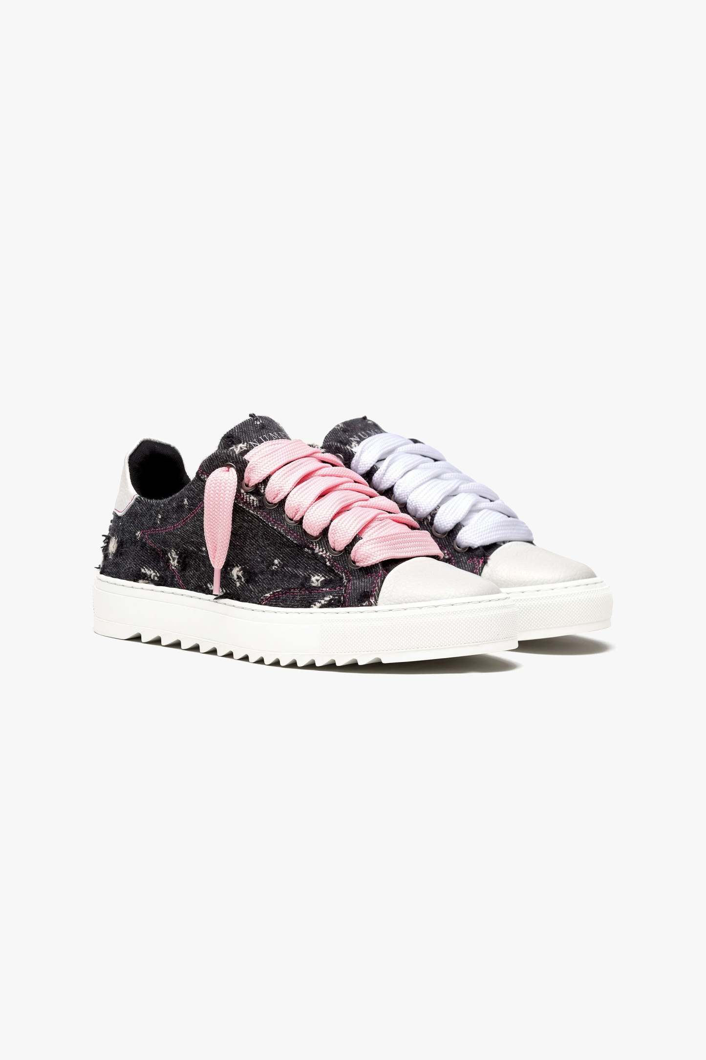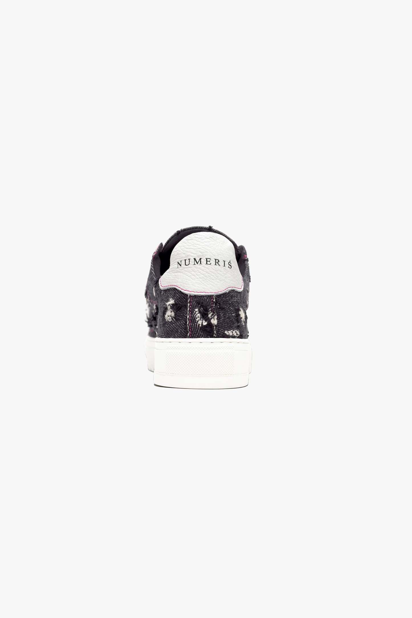 The Pink Denim trainer is a celebration of freedom and self-expression. Crafted with meticulous attention to detail, the bespoke hand-distressed denim upper ensures that each pair is a unique work of art, as no two pairs will bear the same distressed pattern. Complementing this distinctive feature is the signature crisp white pebbled leather toe cap, adding a touch of sophistication to the design. Inside, the trainer boasts a comfortable collar lining that enhances the overall wear experience. The finishing touches include our distinctive Numeriś branding on the heel, accompanied by the style-defining slogan, 'Design is thinking made visual.'