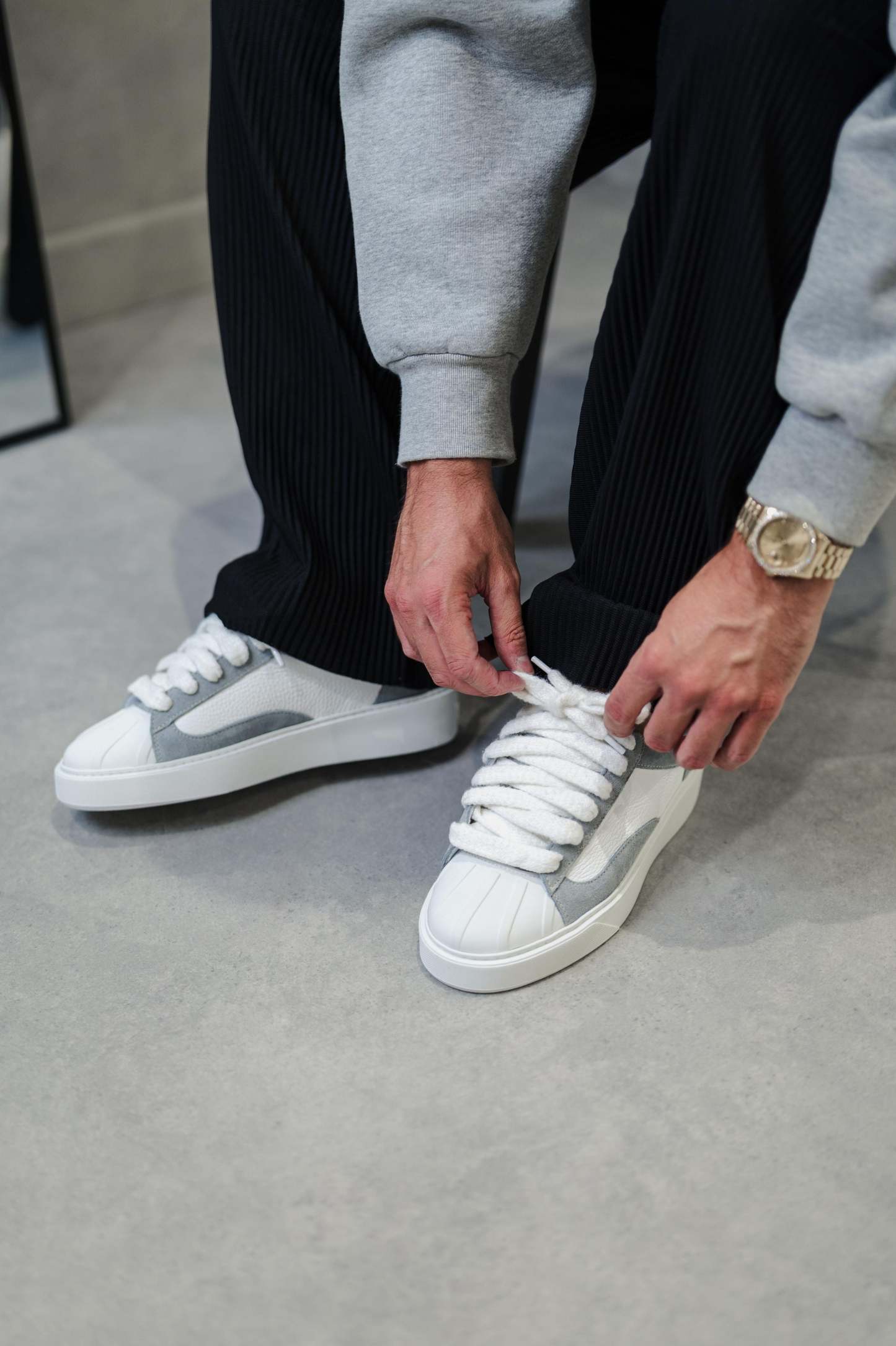 Introducing the Eclipse. Drawing quiet influence from the pared-back forms of 1960s basketball footwear, reinterpreted through a modern, sculptural lens. Its defining element, the hand-shaped rubber shell toe, has been meticulously developed over months to achieve a silhouette that balances structure with design. Designed to sit seamlessly within the flow of the upper, its curves and ridges were shaped through countless iterations to achieve a form that feels both modern and rooted in heritage.