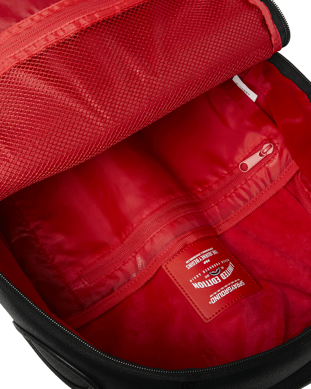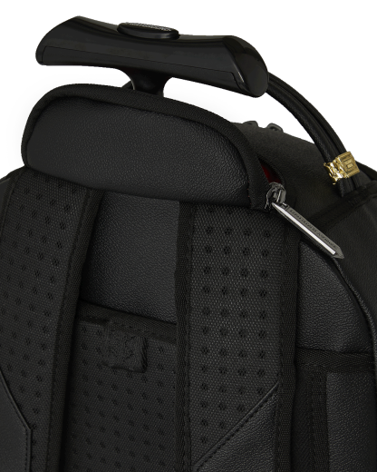 Dimensions: 19" H X 12" W X 7" D • Front zipper pocket • Side pockets • Zippered Stash pocket • Separate velour sunglass compartment • Ergonomic mesh back padding • Adjustable Straps for custom sizing • Gold zippers with metal hardware • Metal "Sprayground Authentic" badge • Slide through back sleeve connects to carry-on luggage to free your hands