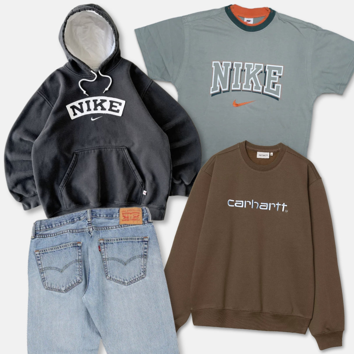 Each box contains a curated assortment of various vintage pieces from the 80’s, 90’s and 00’s. Sportswear, workwear, designer and loads more. Just pick your sizes and we’ll do the rest.