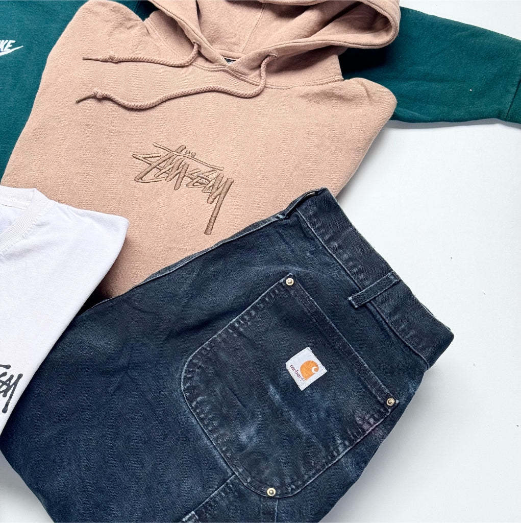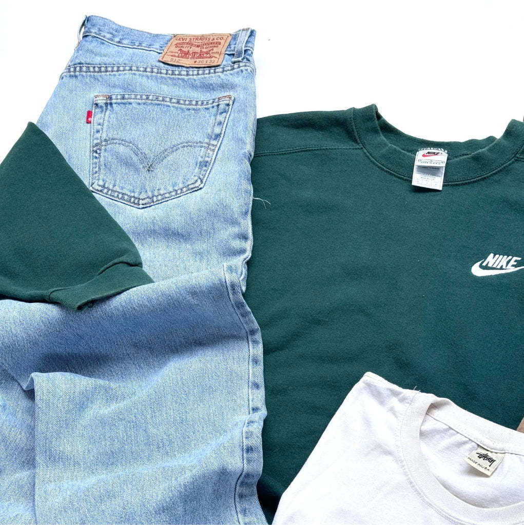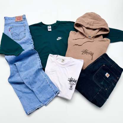 Each box contains a curated assortment of various vintage pieces from the 80’s, 90’s and 00’s. Sportswear, workwear, designer and loads more. Just pick your sizes and we’ll do the rest.
