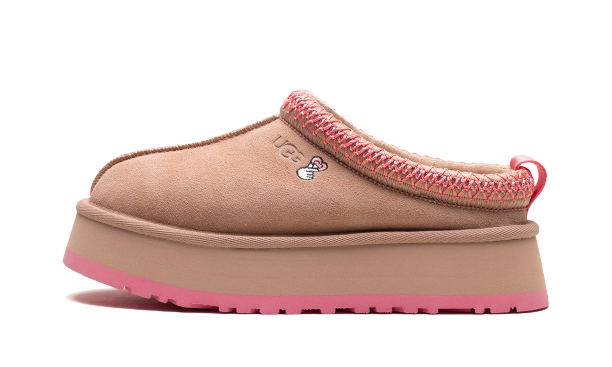 Step into stylish height with the UGG Tazz Love 25 Slipper Wmns "Arroyo / Tropical Pink". This limited-edition women's slipper features an exaggerated platform sole and a plush sheepskin lining for ultimate warmth. The Tropical Pink upper and unique love-themed embroidery make it perfect for running errands or lounging in luxury.