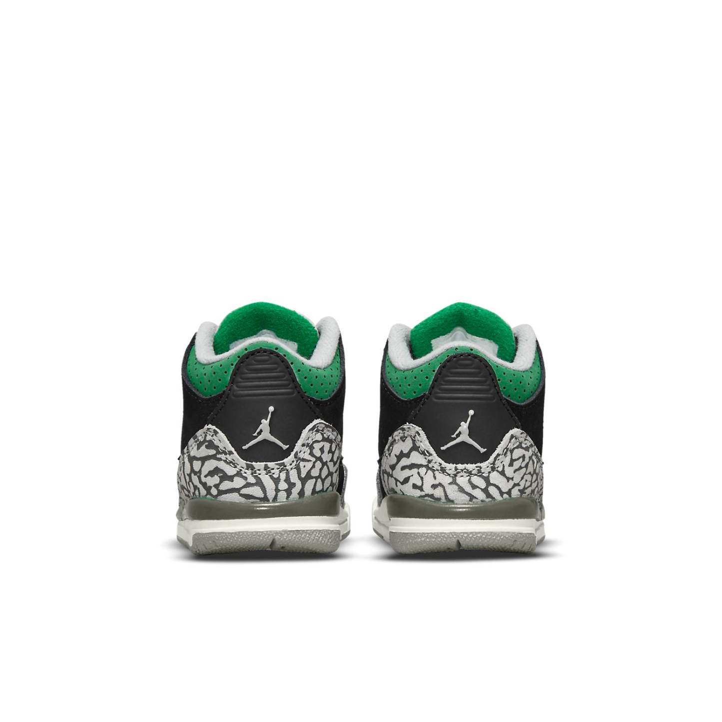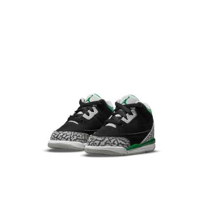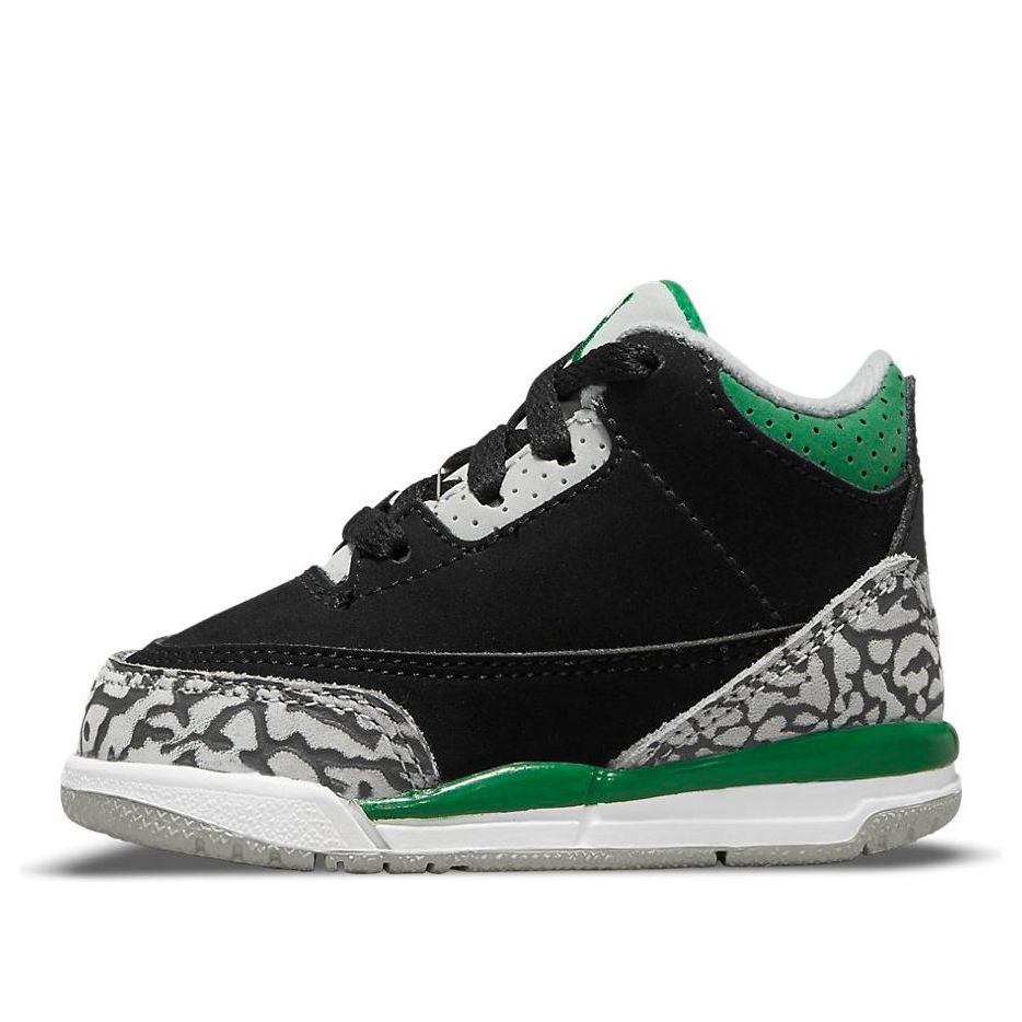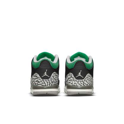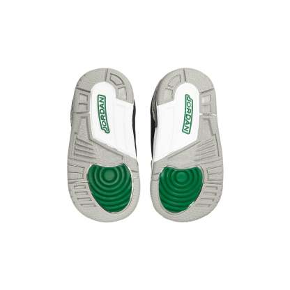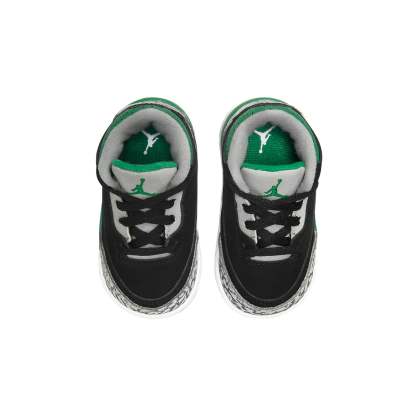 The Air Jordan 3 Retro TD ‘Pine Green’ is a sharp looking sneaker that will get your little one noticed. The black nubuck upper is accented by signature elephant print overlays at the forefoot and heel. A perforated collar, cushy foam midsole and the Jumpman logo embroidered on the tongue add beautiful pops of green, making this sneaker stand out. Additional Jumpman branding hits add extra flair to the back heel and foam insole. The solid rubber outsole features a circular traction pattern for reliable grip, ensuring that your child can run and play in comfort.