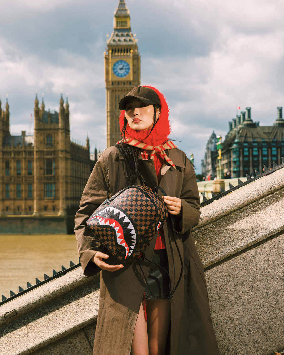 Dimensions: 10" x 5" x 11.5" • Two large main zippered compartments • Side pockets • Zippered Stash pocket • Adjustable straps for custom sizing • Gold zippers with metal hardware