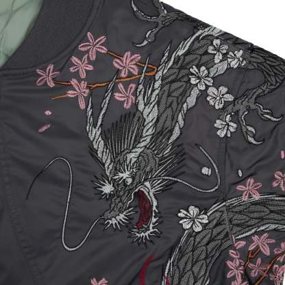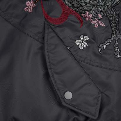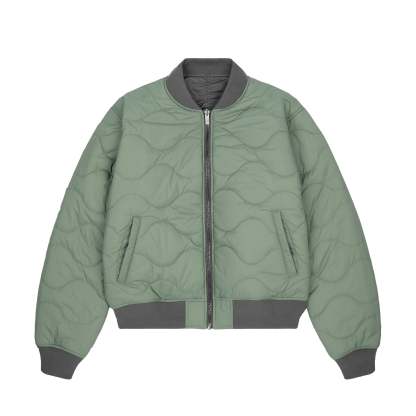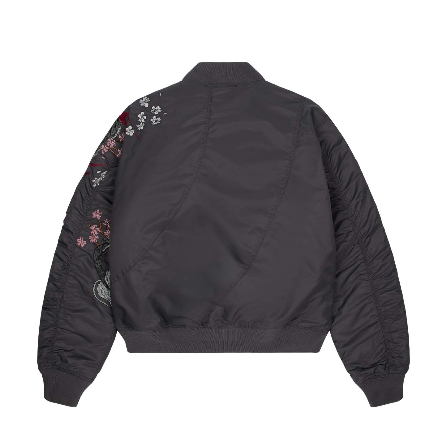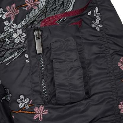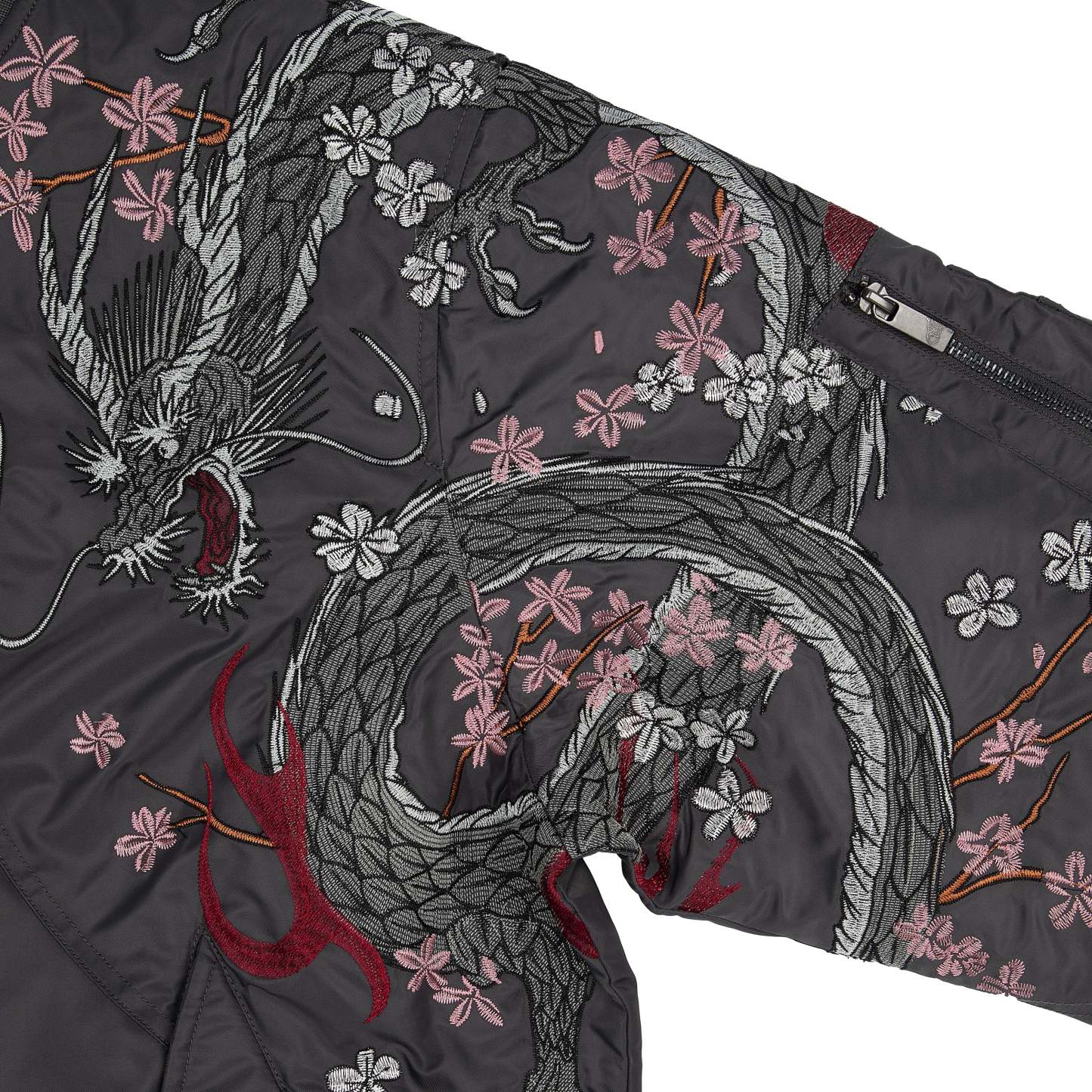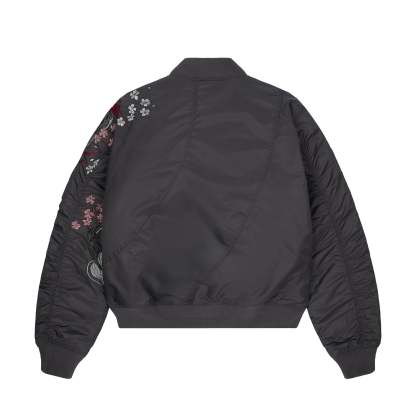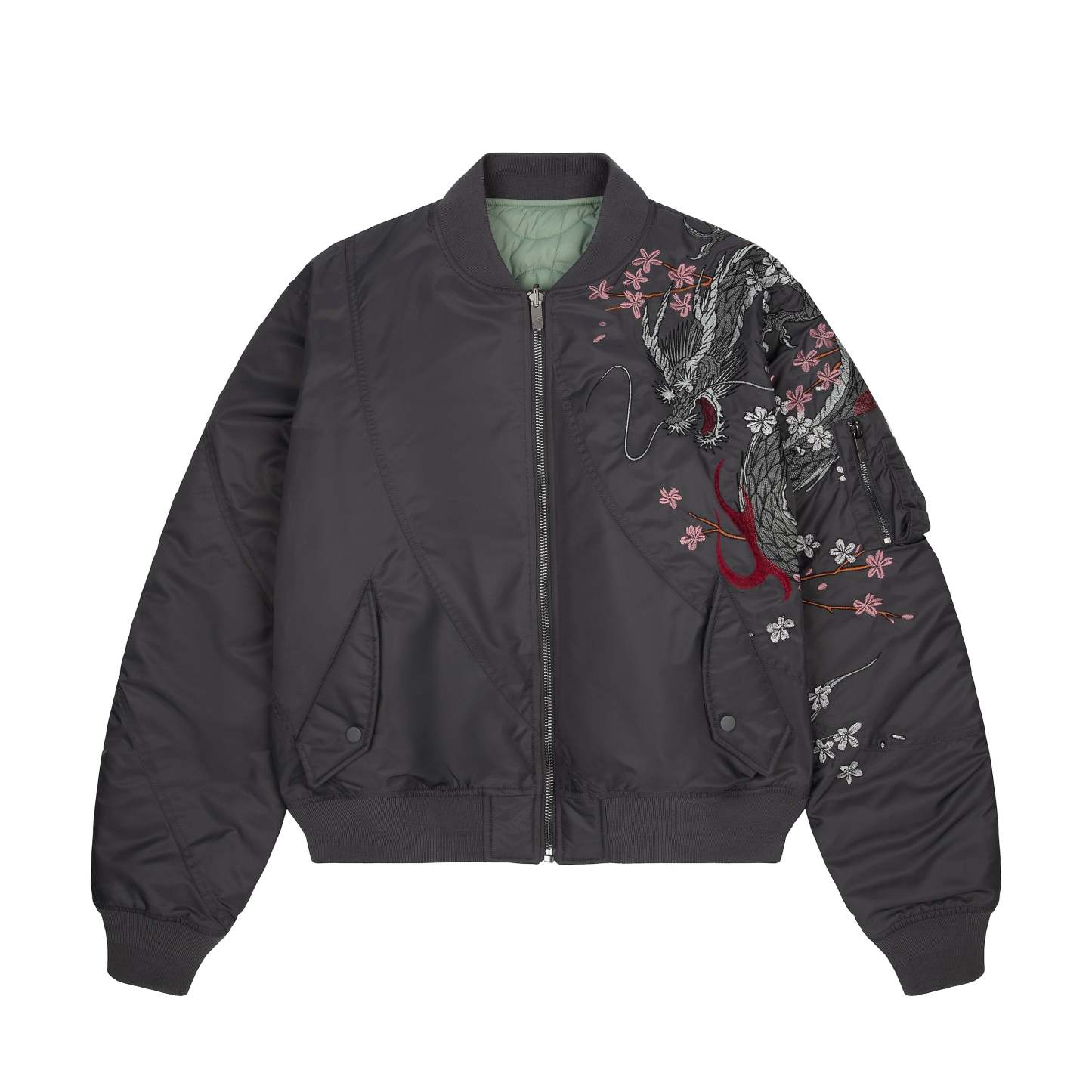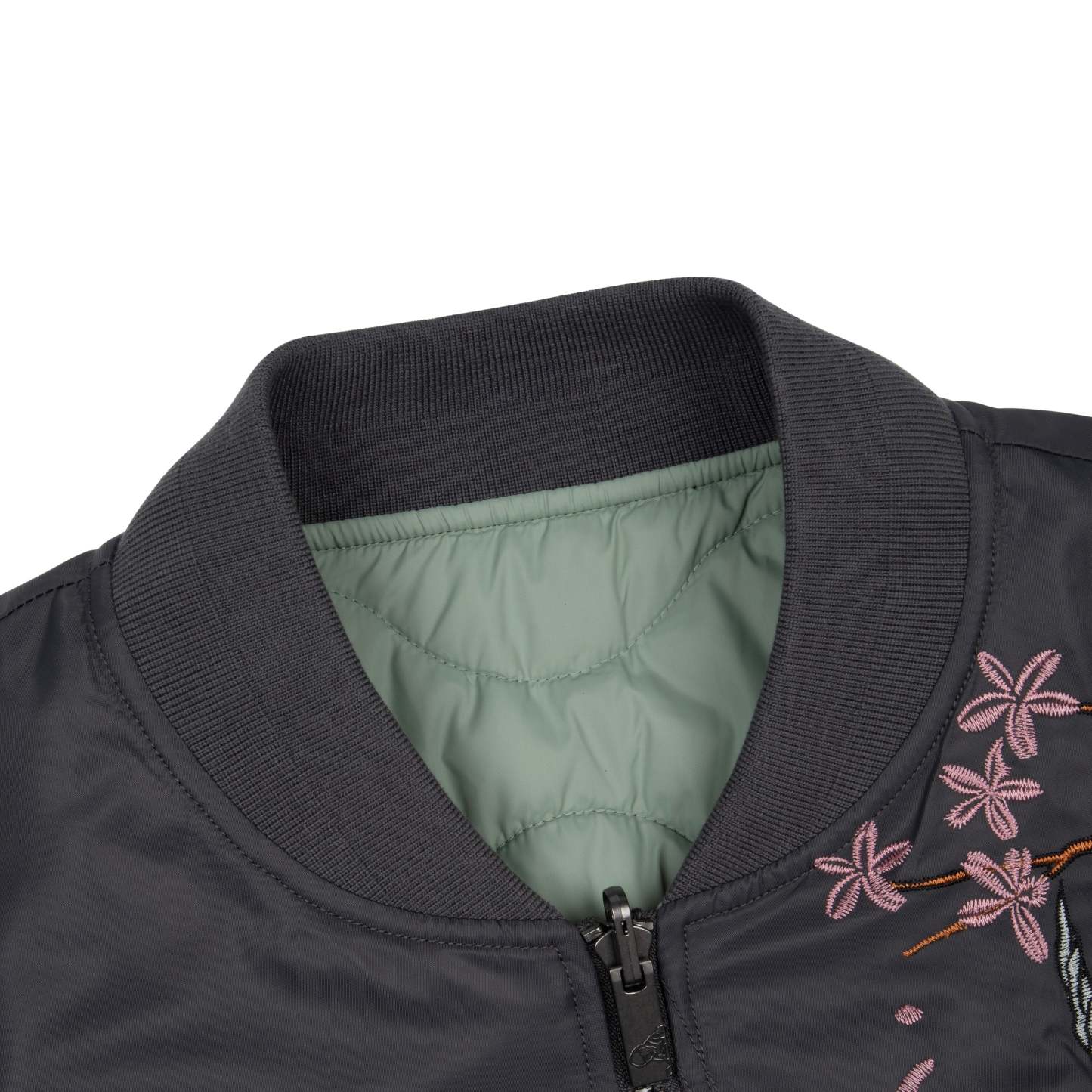 160gsm parachute fabric / 100% nylon / wind- and waterproof / capitone polyester lining / fiber filling / reversible / ribbed collar, hem and cuffs / embroidery on front, sleeve and back / diagonal-cut / with JKJ zipper / custom buttons / fits true to size